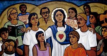 la Teología de la Liberación tiene su origen en el Concilio Vaticano 2º, en ambientes jesuíticos latinoamericanos, en el que pusieron en el centro de los debates el concepto de «comunidad cristiana» frente a la institucionalidad de la Iglesia Católica. Consideran que en origen el cristianismo era comunitario, que existía una comunidad de fieles (Comunidades eclesiales de base) autogestionadas que compartían los bienes, donde los líderes de cada comunidad surgían de la propia comunidad, que la toma de decisiones era asamblearia, en general se regían por la costumbre y por la ley natural en cada lugar. Que las relaciones entre comunidades debían ser por alianzas a modo de actuar de forma mancomunada y cooperativa.