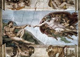 En la capilla Sixtina se ofrece hoy al público el gran fresco que pintó en su bóveda Miguel Ángel (Michelangelo Buonarotti) sobre la creación del ser humano. El ser humano representado en el personaje de Adam levanta un dedo acercándolo al dedo de Dios, situado a la misma altura, aunque sin tocarse, en equilibrio con la figura humana, en una suerte de la necesidad de cercanía entre Dios y la humanidad. En la pared del altar principal en la obra «el juicio Final» también de Miguel Ángel aparecen los ángeles ascendiendo hacia el cielo y los demonios caídos descendiendo hacia los infiernos.